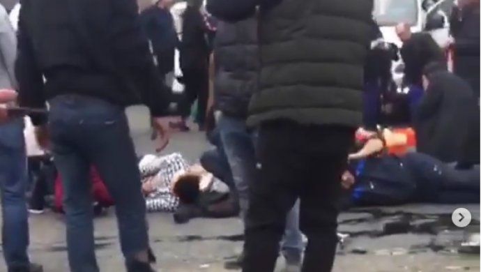 Видео происшествия размещено очевидцами в Instagram-паблике kris_p_brothers. На кадрах видны раненые люди, лежащие на земле и разбитый автомобиль.