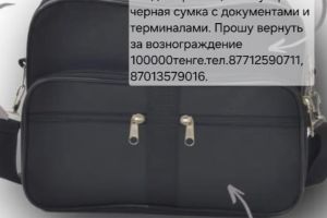 Прошу вернуть за вознаграждение 100 000 черную сумку,с документами и тремя терминалами.