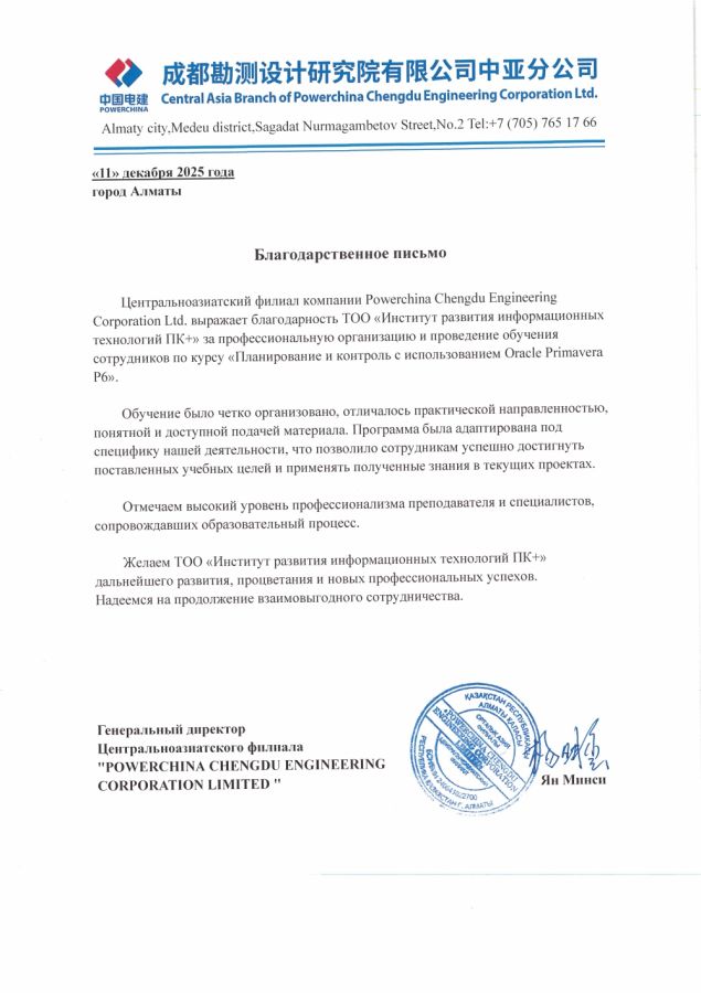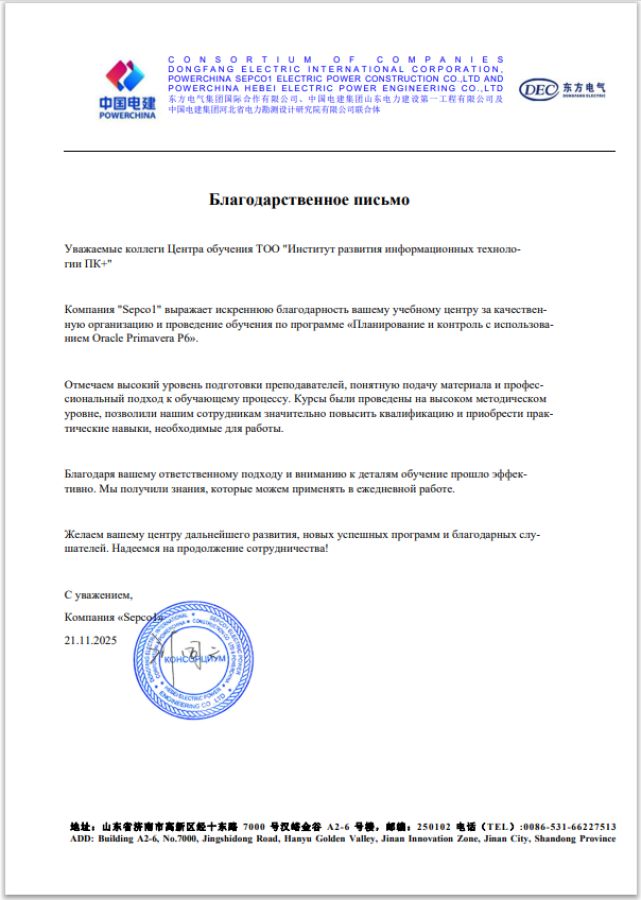 Управление проектами в Primavera P6. Курс Управление проектами в Primavera P6 будет полезен как для начинающих так и для специалистов и руководителей задействованных в проектах. Предлагаем обучить в короткие сроки и в дальнейшем консультировать выпускников в течении 2-х месяцев. Дать дополнительный учебный материал и доступ к пройденным онлайн урокам (в случае онлайн обучения). Выдается сертификат ПК+, на казахском, русском или английском языках. Большой опыт в сфере ИТ образования с 2001 года и отличная репутация. ТОО "Институт развития информационных технологий ПК+". pkplus.kz Корпоративное обучение работников в сфере IT, с ноля до системного администрирования организаций с филиалами