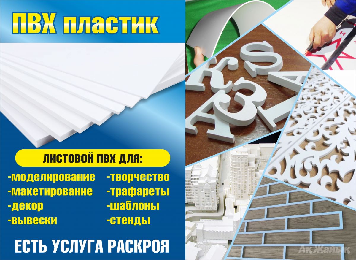 В наличии листовой ПВХ (поливинилхлорид)/ Белый В листах 1,22*2,44см Толщина 3, 5, 8 мм Применение: стенды, вывески, наружная реклама, обшивка, в быту, в мебельном производстве и прочее В наличии по адресу: проспект Азаттык 126/1 (вдоль центральной дороги) ПРОДАЖА ТОЛЬКО ЦЕЛЬНЫМИ ЛИСТАМИ