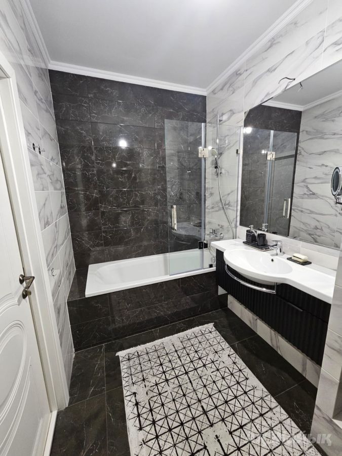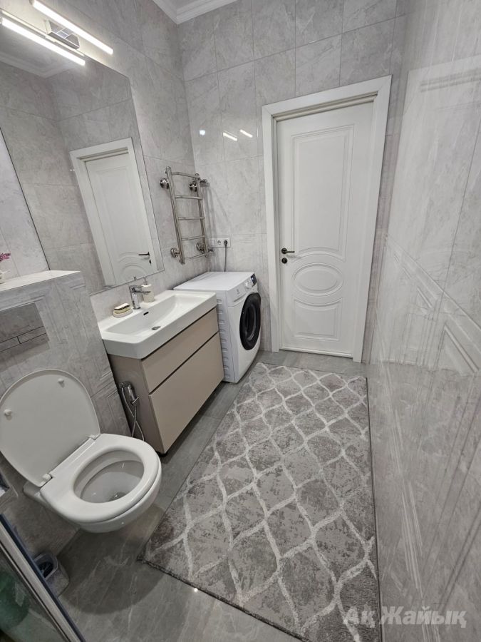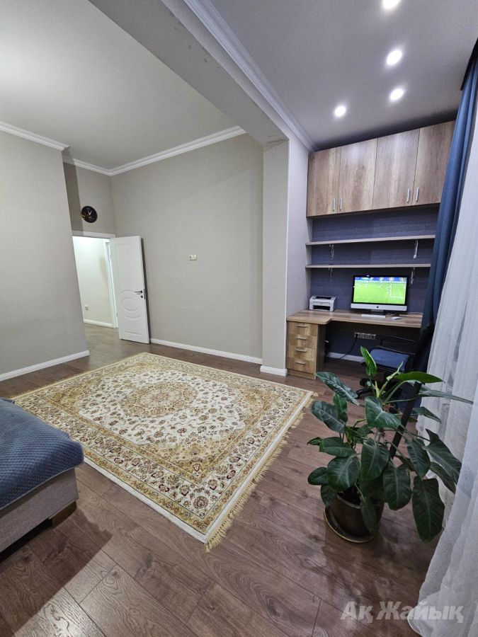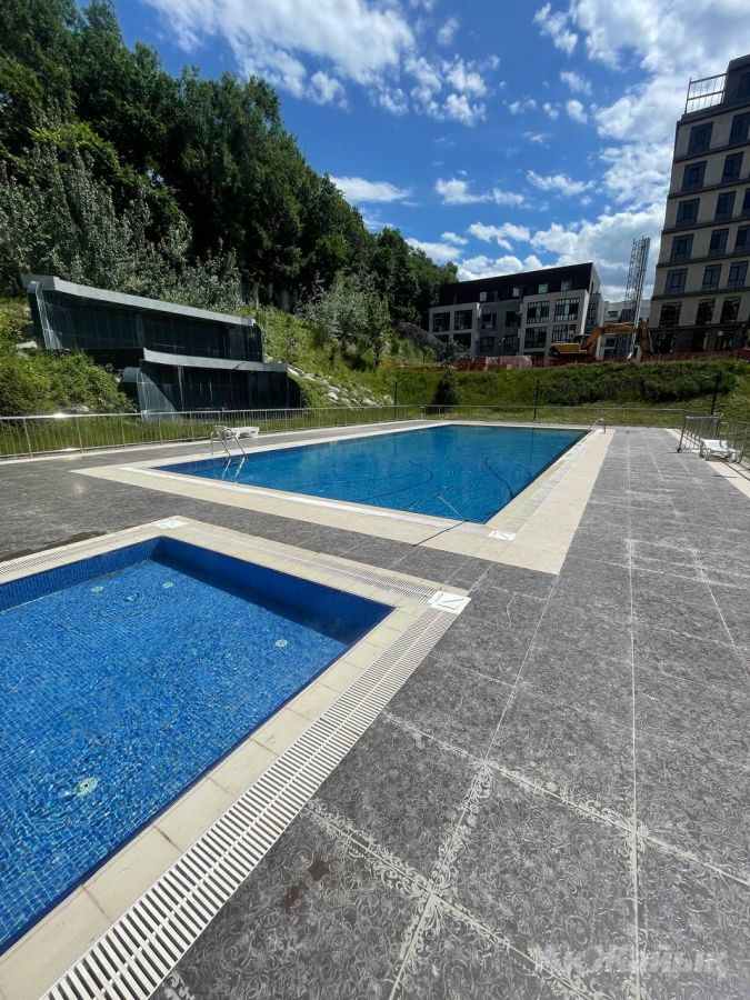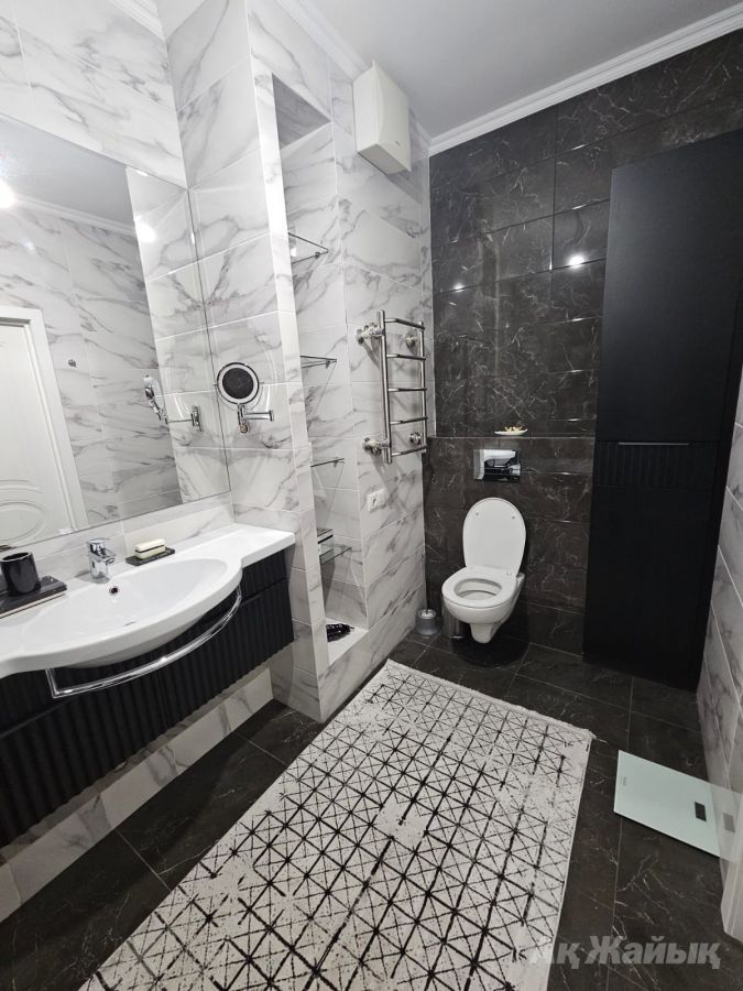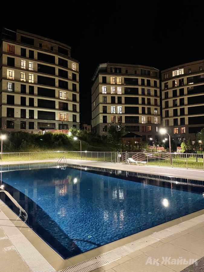 Два санузла, высокие потолки 3,3м, кухня отдельно. Большая территория, тихий уютный двор с четырмя бассейнами, предгорье, свежый воздух. Отличная локация, 5 мин езды от проспекта Аль-фараби, выше ТД Есентай молл.