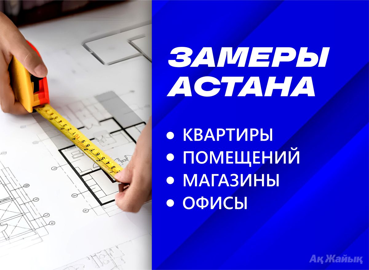 Описание: 📐✏️ Услуги по замеру помещений в городе Астана. Если у вас есть недвижимость в Астане — будь то квартира, офис, магазин или склад — мы выполним точные замеры с подготовкой чертежей. 📣 Специальное предложение для жителей Атырау — скидка 20% на все замеры! Лазерный замер — точная площадь ваших помещений, высота потолков, а также размеры окон и дверей. Для коммерческих объектов — обмер площади под аренду, замеры витрин, ниш и мест под оборудование. 📌 Стоимость услуги: до 99 кв.м² — 350 тг/м² | от 100 до 199 кв.м² — 300 тг/м² | свыше 200 кв.м² — 250 тг/м². Instagram: @zamery.astana
