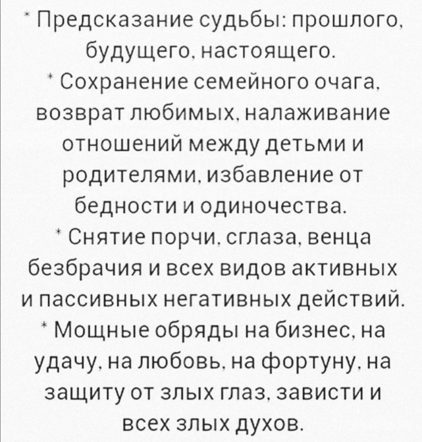 Большой Спектр Магических Услуг! Стаж и Опыт в Работе! Имею Сертификат! Веду Приём Лично и Так Же Работаю Онлайн, есть вотсап. Сертификат ( ВНИЦТНМ " ЭНИОМ " ).