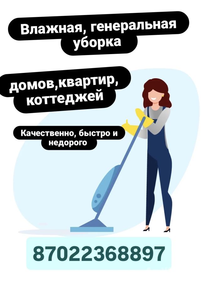 уборка домов и квартир уборка ген уборка , влажная уборка, мытье окон и тд бағасы келісімді