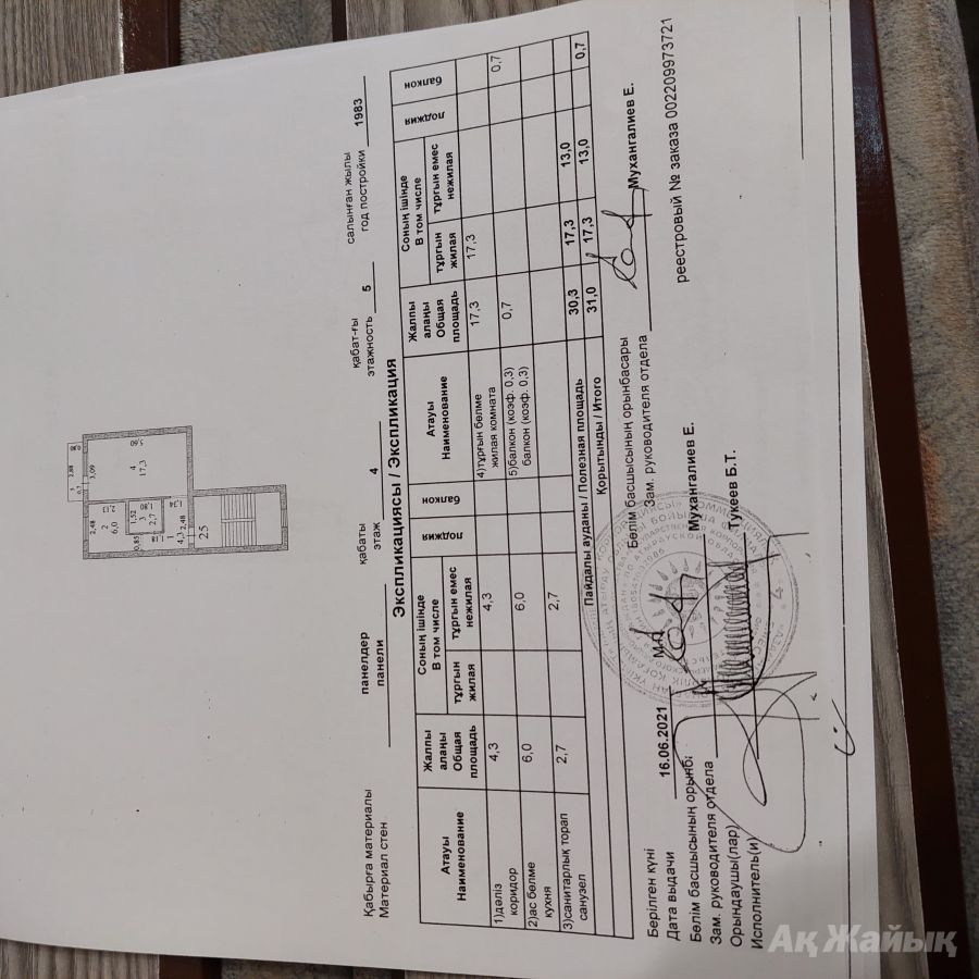 Площадь общая: 31 м2
