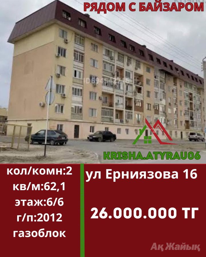 Описание: Продаётся 2х комнатная квартира по ул. Ерниязов 16