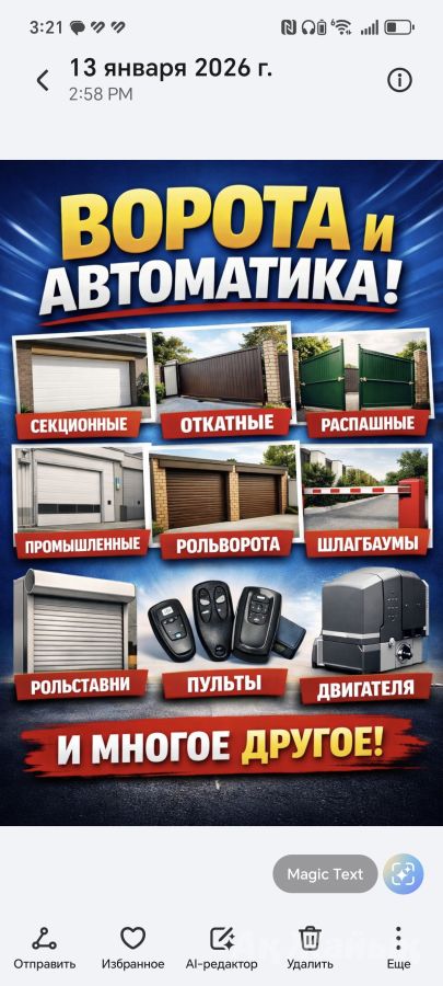 Премиальные ворота и автоматика под ключ ✨ Продажа • Установка • Ремонт Секционные | Откатные | Распашные | Промышленные Шлагбаумы • Рольставни • Автоматика 📞 Качество. Надёжность. Гарантия.