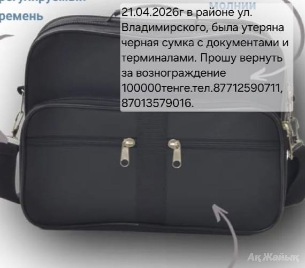 Прошу вернуть за вознаграждение 100 000 черную сумку,с документами и тремя терминалами.