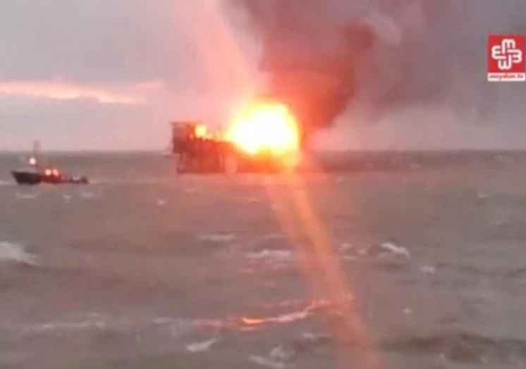 A fire broke out on the rig in the Caspian following a storm on Friday "leading to many deaths," said a statement on the official website of President Ilham Aliyev.