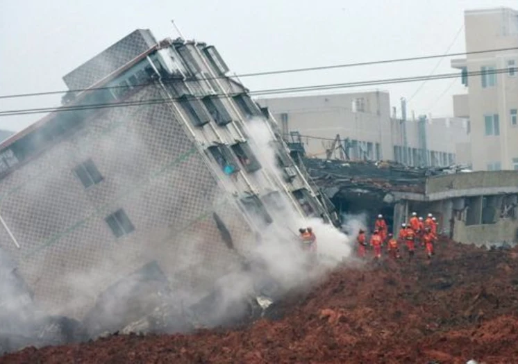 The mud and waste smashed into multi-storey buildings at the Hengtaiyu industrial park in the city's northwestern Guangming New District, toppling them in collisions that sent rivers of earth skyward.