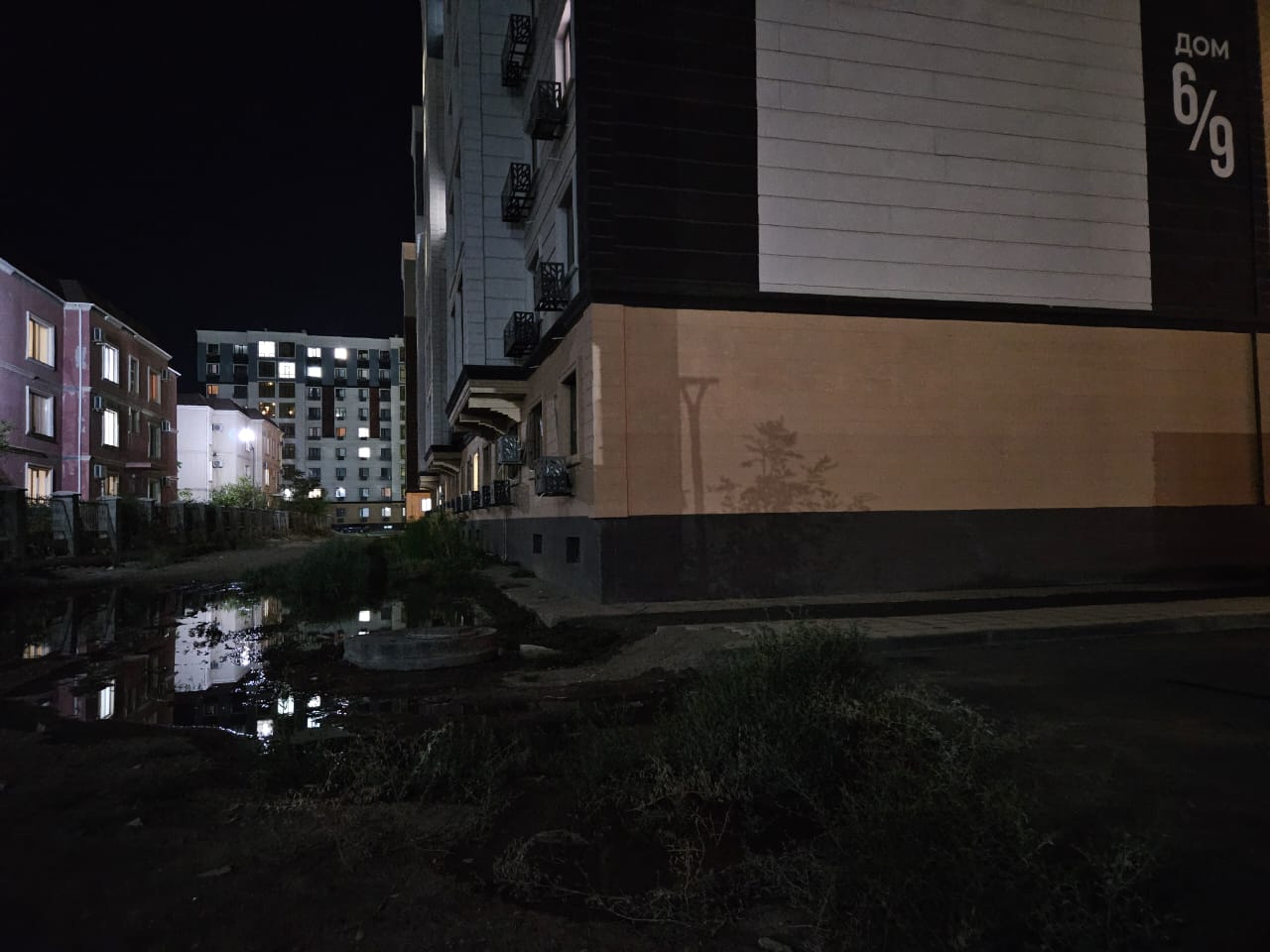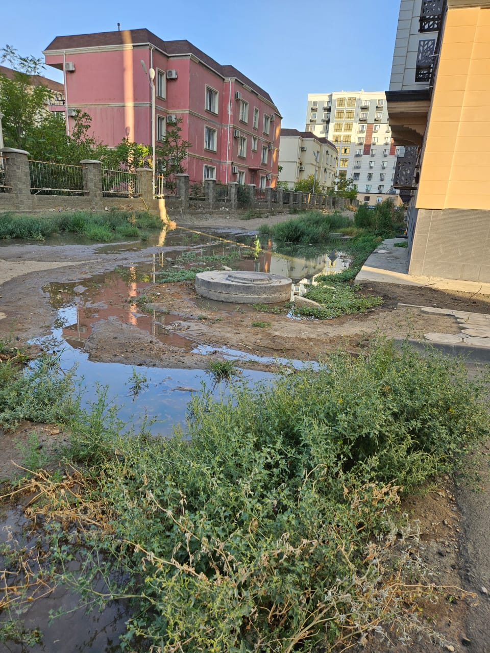 Иесі жоқ (бесхозный) кәріз (канализация) сасық суына қалқыған ЖК Family-дің Жаңа үйлері.