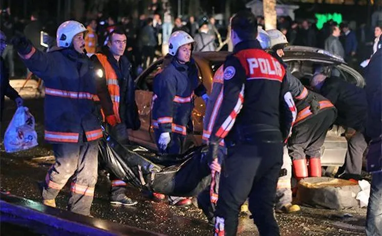 Жарылыс кеше, 13 наурызда кешкі уақытта Түркия премьер-министрінің Гүвен саябағының маңында орналасқан кеңселерінің біріне таяу жердені автобус аялдамасында болған. Екі автобустың ортасында тұрған автомобиль жарылып кеткен. Жарылыс сәті видеотіркеу құрылғыларының біріне жазылып қалған.