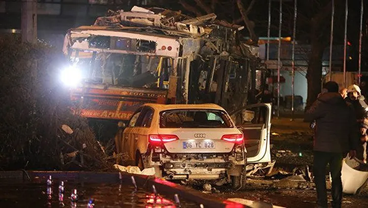 Еске салайық, жарылыс 13 наурызда кешкі уақытта Түркия премьер-министрінің Гүвен саябағының маңында орналасқан кеңселерінің біріне таяу жердегі автобус аялдамасында болған еді. Екі автобустың ортасында тұрған автомобиль жарылып кеткен. Жарылыс сәті видеотіркеу құрылғыларының біріне жазылып қалған.