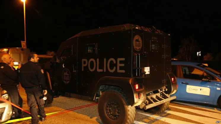 Ішкі істер министрлігінің баспасөз хатшысы Пьер-Анри Брандеттің хабарлауынша, хабарлауынша, шабуыл жасаған адам Парижден батысқа қарай 55 километрдегі Магнанвилль қаласында түнде полицияны үйінің алдында пышақтап өлтірген. Бұдан соң ол үйге басып кіріп, әйел мен баланы кепілге алған. Полиция жасағы кепілдегілерді құтқару үшін үйге басып кірген.