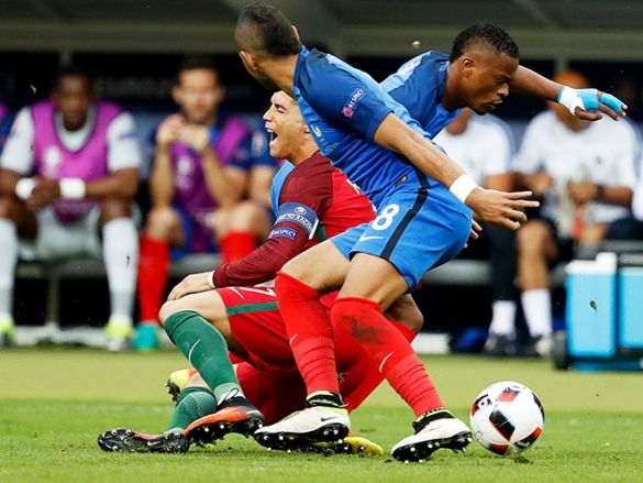 Кейін француздар шабуыл жасады. Мусса Сиссоко допты қақпа бағанасынан биік тепті. Осыдан кейін Роналду ойынды жалғастыра алмайтынын айтып, отыра қалды. Көз жасына ерік берген команда капитанын дәрігерлер алып кетті. Оның орнына Рикарду Куарежму шықты.