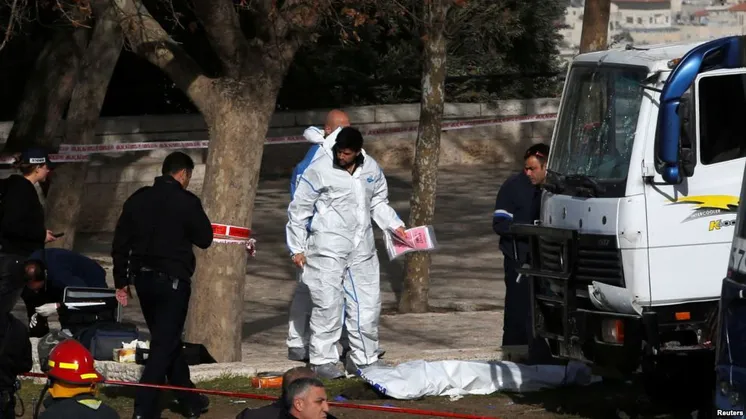 8 қаңтарда Иерусалимнің орталығындағы Ескі шаһар ауданында жүк көлігін басқарған біреу көшедегі жүргіншілерді таптап өткен. Шабуылдан төрт адам қаза тауып, 15 адам жараланған. Полиция жүк көлігін жүргізген адамды оқиға орнында атып тастаған. Полиция оқиғаны теракт деп бағалайды.