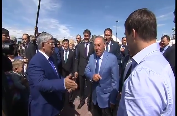Қазақстан Республикасының Президенті Нұрсұлтан Назарбаев Астанадағы «Этноауыл» ұлттық-мәдени кешенін аралау барысында ауыр атлетикадан Қазақстан спортшысы Илья Ильинмен әңгімелесті.