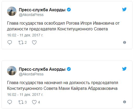 "Елбасы Қайрат Мәмиді Конституциялық кеңес төрағасы лауазымына тағайындады", делінген баспасөз қызметінің хабарламасында.
