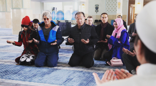 Сапар барысында олар облыс орталығындағы мешітте болды. Шетелдік қонақтарды мешіттің бас имамы Ермек қажы Мұқатай қарсы алды. Порталдың жазуынша, қонақтар мұсылман дәстүрінің байлағына және өңірде түрлі конфесиялардың бейбітшілікте өмір сұріп жатқаны таңдандырған. Кездесу мешітке келушілердің көзінше өтті. "