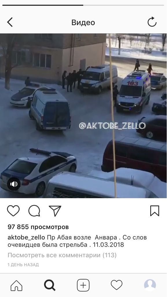 Instagram желісіндегі aktobe_zello парақшасында 11 наурызда кешкі уақытта Ақтөбе әкімдігінде атыс болғаны айтылады. Басылымның мәліметінше, ер адамның бірі тапаншамен оқ атқан.