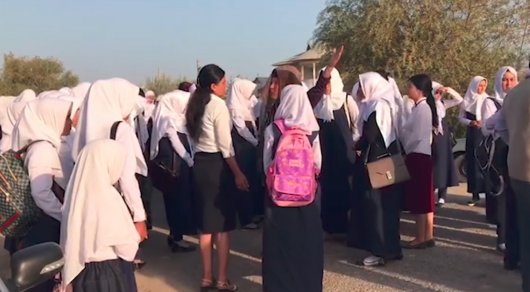 Түркістан облысындағы Фирдауси ауылында мұсылман орамалын таққан оқушы қыздар мектепке кіргізілмеді.
