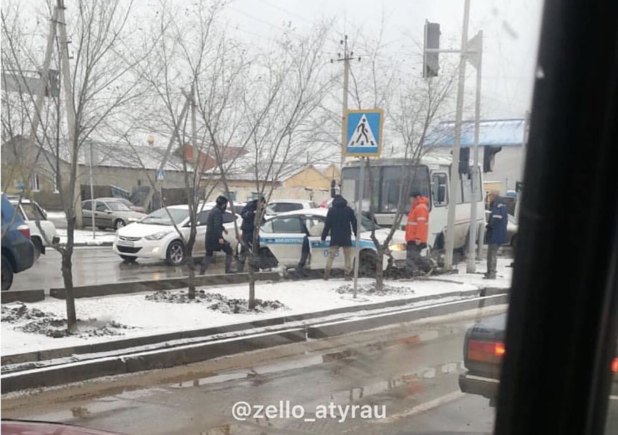 Әлеуметтік желілерде Атыраудағы жол-патруль полициясы көлігінің қатысуымен орын алған жол-көлік апатының суреті таралуда.