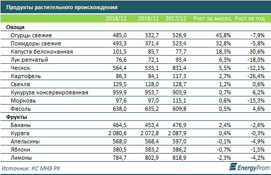 Ал жеміс-жидектердің ішінде желтоқсанда бананның 2,4 пайызға, кептірілген өріктің 0,4 пайызға қымбаттағаны айтылады. Ал лимон, керісінше, бір айда 2,3 пайызға арзандаған.