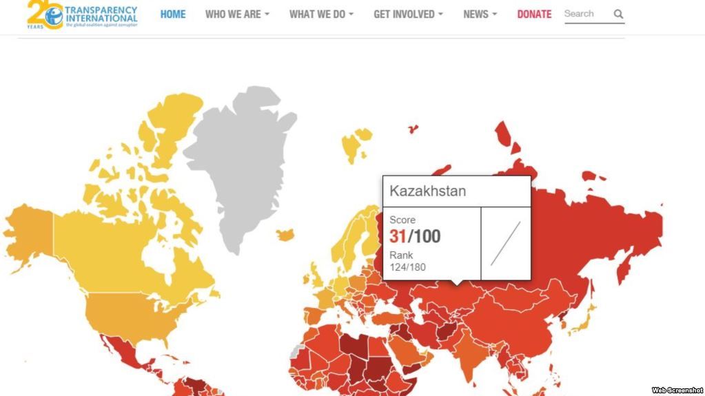 Transparency International (TI) халықаралық ұйымы жыл сайынғы Жемқорлықты қабылдау индексін (Corruption Perceptions Index 2018) жариялады. Қазақстан индексте 2018 жылы екі орын төмендеп, 124-орынға сырғыды. Ұйым былтыр Шығыс Еуропа мен Орталық Азия елдері мемлекеттік және қоғамдық салаларда сыбайлас жемқорлық деңгейін азайтуда алға ілгерілей алмай, аймақта демократияға қауіп төндіргенін айтады.
