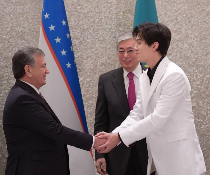 Әнші Димаш Құдайберген Ташкентте Қазақстан Президенті Қасым-Жомарт Тоқаев және Өзбекстан Президенті Шавкат Мирзиеевпен кездесті.
