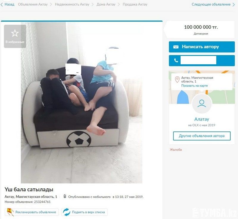Ақтауда үш жеткіншектің сату туралы хабаралама 27 мамыр күні жарнамалық сайтта жаряияланған болатын. Хабарлама мәтінінде үш баланың арзан бағаға сатылатыны айтылған. Және дәл осы жерде олардың суреттері де көрсетілген.