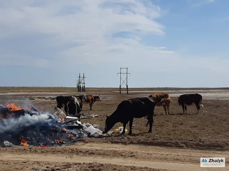 Қоқыс алаңы толық қоршалмағандықтан сиырлар емін-еркін қоқыстарды аударыстап, жайылып жүр.
