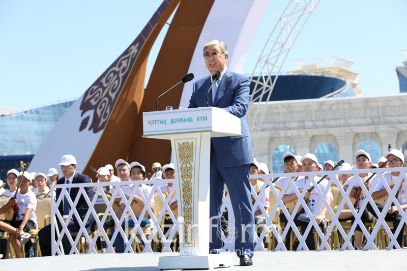 "Бүкіл халқымыз осы шуақты мерекені айрықша қуанышпен тойлайды. Себебі қазақ пен домбыра егіз ұғым. Ақын Қадыр ағамыз қасиетті домбырамызды "нағыз қазақ" деп жырлаған. Күмбірлеген домбыраның үні батырларымызға рух, ақындарымызға шабыт берген. Домбыра әрбір қазақтың рухын көкке көтеретін құнды қазынамыз бола беруі тиіс",- деді Қасым-Жомарт Тоқаев.