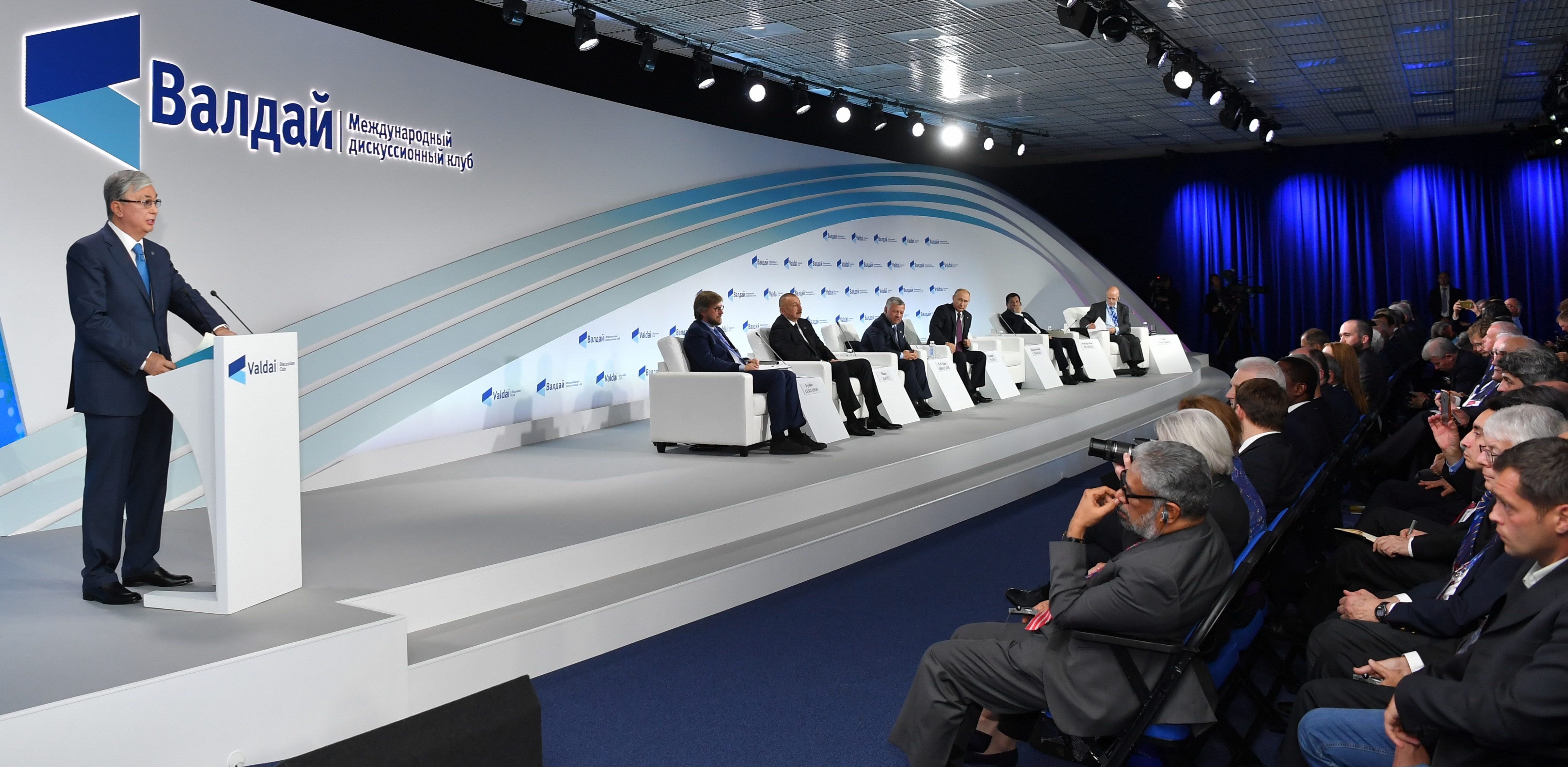 Қасым-Жомарт Тоқаев Ресей Президенті Владимир Путиннің шақыртуымен жыл сайын өтетін «Валдай» халықаралық пікірталас клубының XVI пленарлық сессиясына қатысты. Әлемнің ондаған елінен келген беделді саясаткерлер мен белгілі сарапшылардың, қоғам қайраткерлерінің басын қосқан биылғы форум ғаламдық геосаясаттағы Шығыстың рөлі тақырыбына арналды. Мемлекет басшысы шараға қатысушылардың алдында сөйлеген сөзінде Қазақстан тарихи және географиялық орналасу жағынан Шығыспен де, Батыспен де байланыс орнатқанын атап өтті.