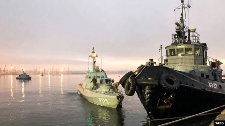 Біріккен ұлттар ұйымының теңіз құқығы бойынша халықаралық трибуналы биыл мамырда Ресейді Украина кемелерін қайтаруға міндеттейтін қаулы алған. Алайда Мәскеу бұл жағдайда трибуналдың заңдық күші жоқ деп есептейтінін білдірген. Мәскеу Украина кемелері Ресейдің теңіздегі шекарасын бұзды деп санайды.