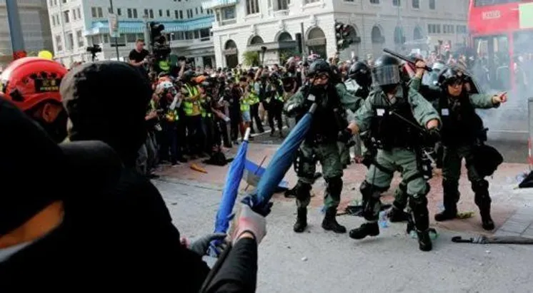 Басылымның мәліметінше, мұның алдында ереуілшілер Гонконгтағы үлкен көпірді түгел өртеп жіберген. Осыған байланысты құқық қорғау органдарының өкілі Луис Лау наразылық шарасына қатысушыларға видеоүндеу жолдады. Ол видеода полицейлерге қатысты зорлық-зомбылық тоқтатылмаса, тәртіп сақшылары атыс оғын қолдануы мүмкін екенін мәлімдеді.