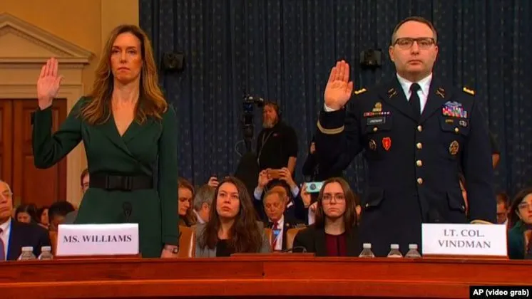 Сейсенбі күні подполковниктен бөлек, дипломат Дженифер Уильямс те жауап берді. Ол вице-президент Майк Пенстің көмекшесі болған және Трамптың Зеленскиймен әңгімесінің куәсі болған. Уильямс екі президенттің әңгімесі "ерекше" болғанын айтып, онда "АҚШ-тың ішкі мәселелері" айтылды деді.
