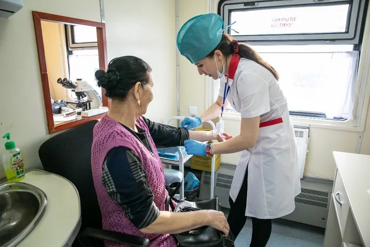 Қазіргі уақытта медициналық пойыз Маңғыстау облысының аумағында және бұл оның соңғы бағыты.