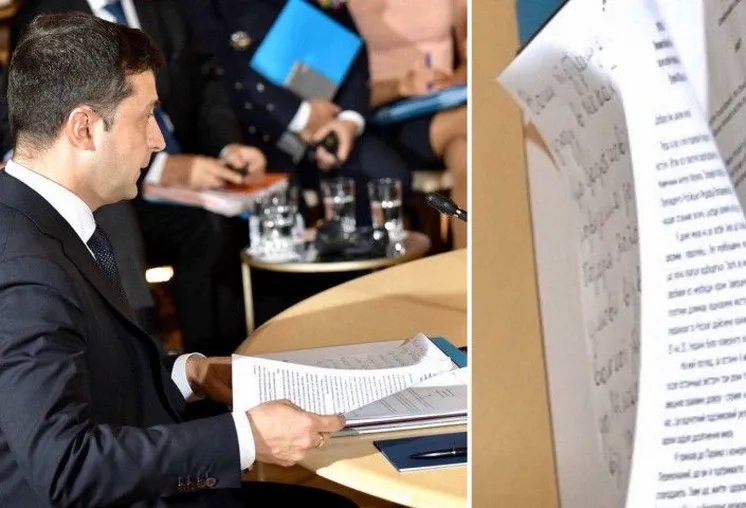 Сонымен қатар, ресейлік журналистер Париждегі саммитте Владимир Зеленскийдің сөзі орыс тілінде қолмен жазылғанын аңғарып қалған. Украина президентінің шпаргалкасын Кремль пулының тілшісі Дмитрий Смирнов суретке түсіріп алған.