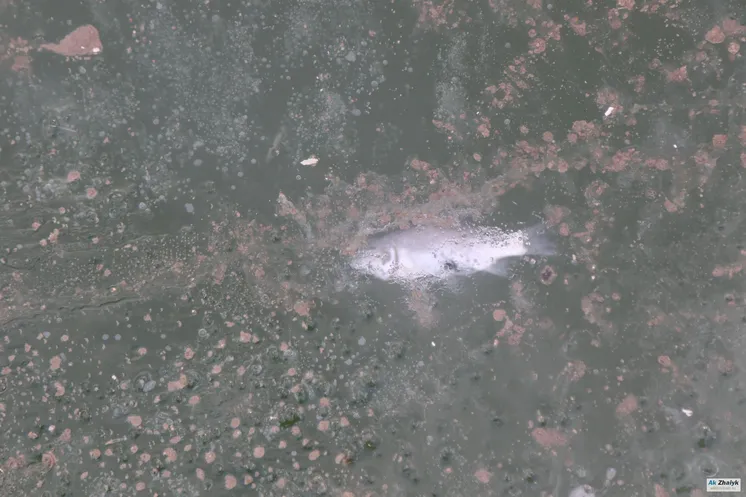 - Бүгін таңертең біз экология департаменті, «Қазгидромет», «Балық шаруашылығы» ғылыми-зерттеу орталығының қызметкерлері, санитарлық дәрігерлер және полицейлермен бірге АМӨЗ су тоғаны ауданына барып, айналаны қарап шықтық. 17 дана өлі балық - 15 қылышбалық, 1 табан, және 1 мөңке - таптық. Су сынамасы алынды, балықтарды «Балық шаруашылығы» ғылыми-зерттеу орталығына және ветеринарлық зертханаға жібердік. Балықтар зақымданған, болжам бойынша, ұзақ уақыт браконьерлік торда жатып қалған іздері бар.