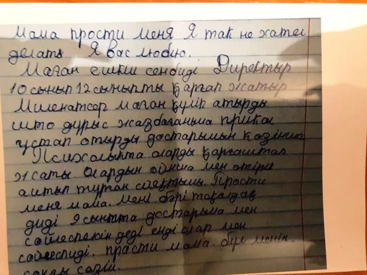 Оның сөзінше, хат жазуына себеп сыныптастарымен сөзге келісіп қалуы болған екен.