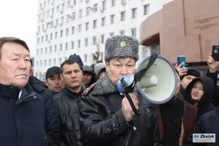 Жиналғандармен келіссөз жүргізуге облыстық ішкі саясат басқармасының басшысы Жасұлан БИСЕМБИЕВ пен қала әкімінің орынбасары Ұлықбек ТІНӘЛИЕВ шықты.