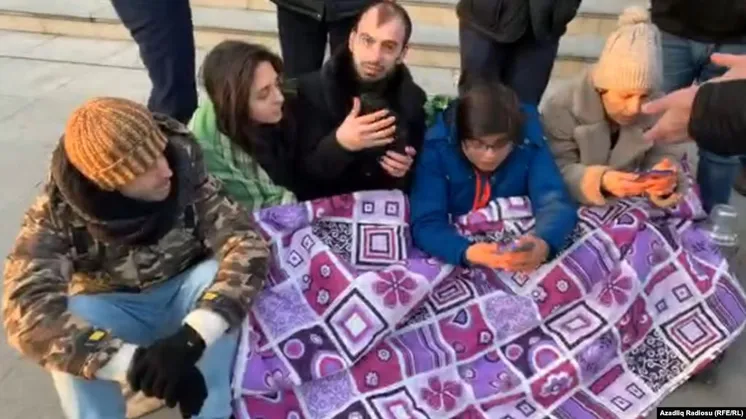 Наразылар Әзербайжанның орталық сайлау комиссиясы ғимаратының маңындағы тротуарда отырып, наразылық жасады. Арнайы жасақ сарбаздары белсенділерді ұстап, автобусқа отырғызып алып кетті.
