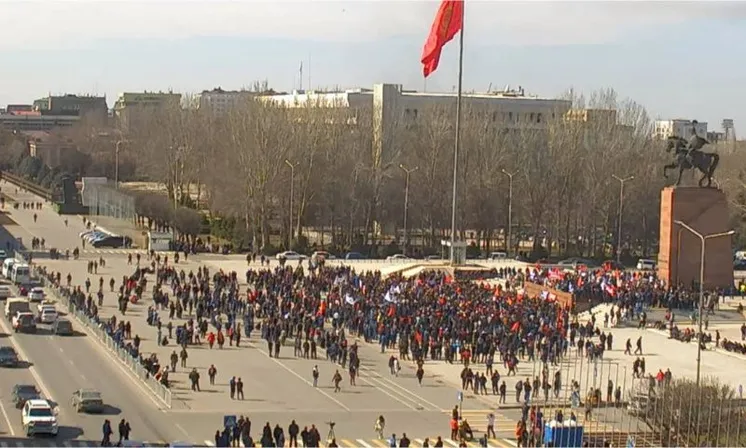 Бішкектің Алатау алаңында өтіп жатқан ауқымды митингте наразылар қамаудағы саясаткер Садыр Жаппаровты бостаумен қатар үкіметті отвставкаға жіберу, конституциялық реформа жүргізу талабын қойып жатыр. Бұл жөнінде Жогорку Кеңештің бұрынғы спикері Мукар Чолпонбаев шеруде арнайылап сөз сөйледі.