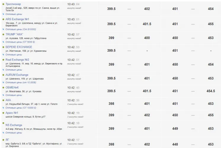 Евро бағамы да айтарлықтай өсті, оның құны валюта айырбастау орындарында 450-455 теңге.