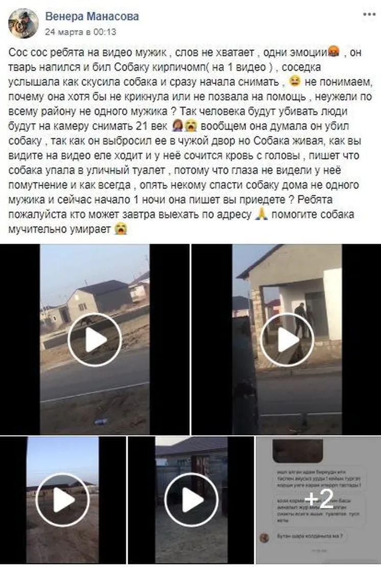 Әлеуметтік желіде жарияланған мас күйдегі ер адамның ақ таспен иттің басынан ұрғаны көпшіліктің наразылығын тудырды.