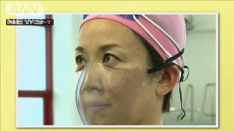 Себебі жаттықтырушы дауыстап түсіндіріп, кейде баланың судағы қалпын түзетуі керек болады. Мұның барлығы инфекциядан қорғайтын бетперде қажеттілігін тудырды, сонымен бірге маска ылғалданбайтын әрі суда жүзгенде түсіп қалмайтындай болуы керек еді. Токио қаласының орталығындағы шағын компания бұл мәселенің шешімін тапты. Оның маскалары түссіз материалдан жасалған, беттің төменгі бөлігін толық жабады, суда сырғып, түсіп қалмайды.