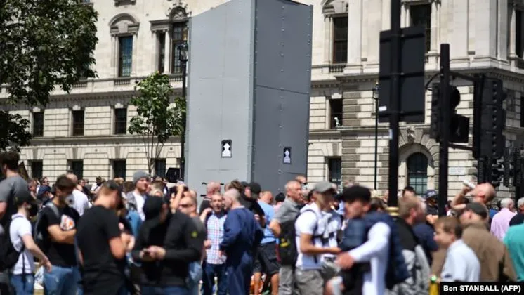 Билік ескертуіне қарамастан 13 мамырда Лондонда мыңдаған адам қатысқан шеру өтіп, наразылық кезінде полицейлер шабуылға ұшыраған. Оңшыл белсенділер тарихи ескерткішті қорғауға келгенін айтқан.
