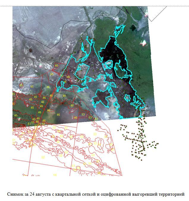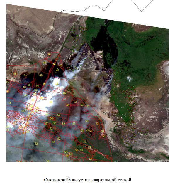 Менің қолыма белгілі бір топқа арналған қызықты материал түсті - бұл спутниктен түсірілген өртенген аумақтың аэроғарыштық кадрлары. Елордада бұл түсірілімдерге кімнің тапсырыс бергенін нақты білмеймін. Менің ойымша, ҚР Экология, геология және табиғи ресурстар министрлігі шығар, өйткені орман шаруашылығы мен жануарлар дүниесі соларға қарайды. Бірақ бұл кадрлардың ілеспе анықтамасында мүлдем басқа цифрлар жазылған. Бұл жерде екі нәрсенің бірі - спутниктегі техника дұрыс емес не біреулер өтірік айтады. Өздеріңіз төрелік етіңіздер: