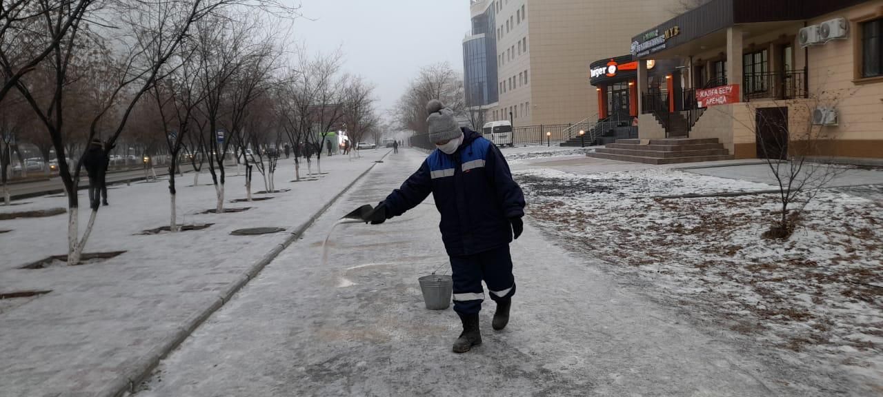 - 28 желтоқсаннан бастап көктайғақ пен тұман болатыны болжанғандықтан, біз басты көшелер – Әбілхайыр хан, Сәтпаев, Владимирский, Азаттық, Махамбет көшелеріне 9 тонна тұз септік, - дейді баспасөз қызметі. – 28 желтоқсан сағат 02.30-дан бастап таңертеңге дейін реагенттің тағы да 18 тоннасы себілді, ал күндіз көпірлер, баспалдақтар, тротуарлар және қалалық ауылдық жерлерге шығатын жолдар өңделді – оған тағы да 27 тонна кетті. 100 жұмысшы жолдардағы мұзды оюға шықты.