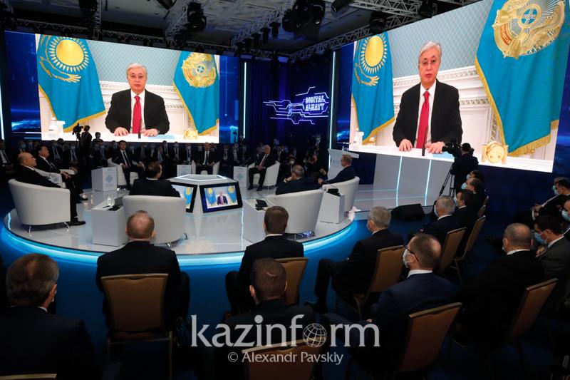 Мемлекет басшысы Қасым-Жомарт Тоқаевтың форум қатысушыларына видеоүндеу жолдады. «Сіздерді біздің еліміз үшін аса маңызды шарада көргеніме қуаныштымын. Мәртебелі қонақтардың арасында жеті елдің үкімет басшылары, ТМД Еуразиялық экономикалық комиссиясы атқару комитетінің жетекшілері бар. Бұл форумның маңыздылығын арттыра түседі. Бізде мемлекеттік қызметтің 90 пайызы электронды форматта көрсетіледі. Дағдарыс кезінде 6,5 млн адам мемлекеттің қолдауына ие болды. Білім беретін мекемелердің барлығы қашықтан оқу үрдісіне көшті. Елімізде 15 млн-нан астам адам интернетті қолданады. Болашақ – технологиялар мен инновациялардың еншісінде екенін жақсы түсінеміз. Бұл салада бәсекелестік өте жоғары. Сарапшылардың пікірінше 2021 жылы техникалық және технологиялық нарық және бағдарламалық шешімдер жасанды интеллектіге бағатталады. Сымсыз ғаламтор мен сандық жүйелердің үлесі 35 пайызға артып, 12 млрд АҚШ долларына жетеді. 2025 жылға қарай 5G технологиясы кәсіпорындарға өздерінің мәліметтерін 70 пайызға дейін өндеуге мүмкіндік береді. Қазақстан жасанды интелектіні дамытудың жолын белгілеп алды»,- деді Қазақстан Президенті үндеуінде.